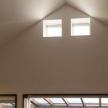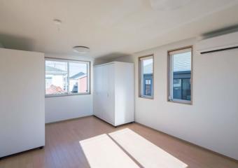 - お施主様と息子様ご家族の2階建て二世帯住宅。各階で世帯ごとに生活が送れる構成。息子様世帯のキッチンはオープンなものとし、リビングと一体で利用できるものとした。リビングに併設する個室は、まだ小さい子供のお世話がしやすいよう開き戸の横にはめ殺し窓を設置。子供部屋は大型の可動家具で間仕切り、レイアウトを自由に変更できるものとした。