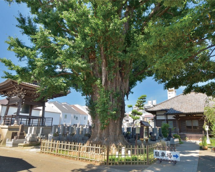 光福寺の創建は奈良時代末期の延暦元(782)年です。境内には見上げるような大銀杏があり、樹齢推定800年で、高さが30m、幹回りは6.4mの区内最大樹です。